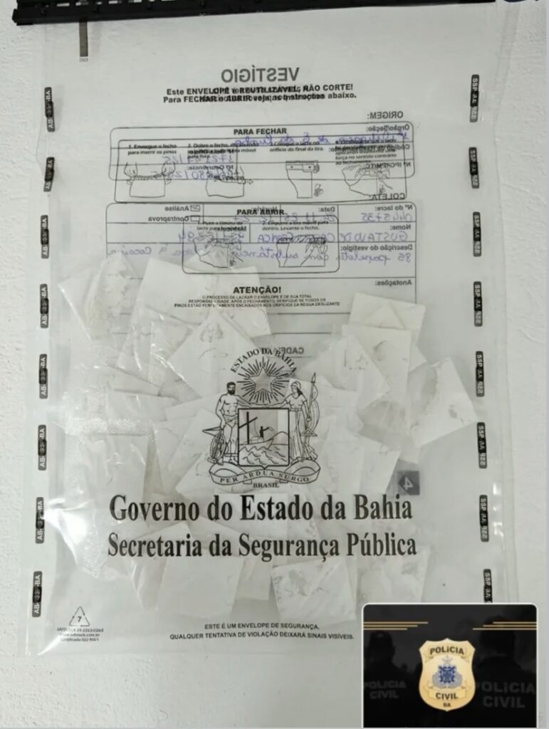 A Polícia Civil da Bahia, por meio da Delegacia Territorial de Euclides da Cunha, prendeu em flagrante na manhã desta segunda-feira (24 de novembro de 2025) um homem identificado pelas iniciais J. P. S. S., suspeito de tráfico de drogas. A ação aconteceu por volta das 11h, no povoado Bandinha do Aribicé, na zona rural do município.