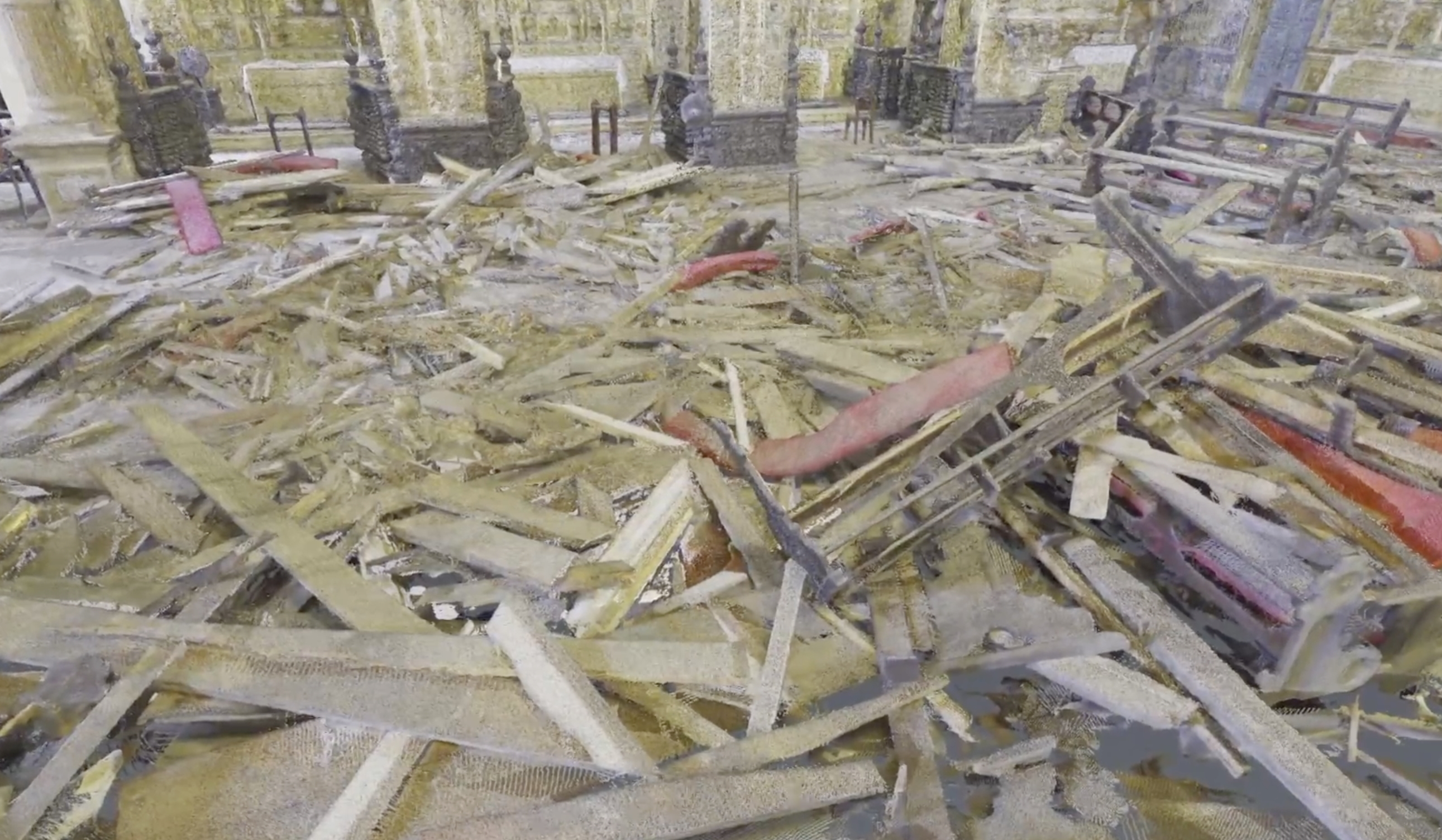 O teto do local possuía ornamento com detalhes de ouro e pinturas sacras do século 18. Imagens de câmeras do circuito interno mostram que às 14h24 do dia 5 de fevereiro seis turistas foram atingidos pelo desabamento. Cinco tiveram ferimentos leves, mas a paulista Guilia Righetto, de 26 anos, morreu na hora.