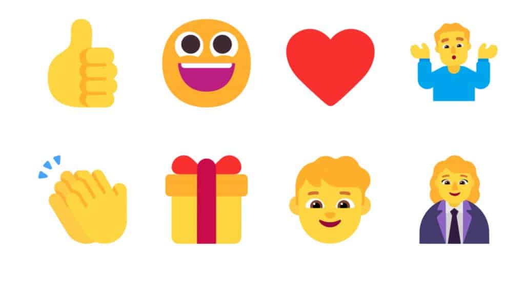 O Windows incluiu emojis coloridos a partir do Windows 8.1, com a fonte Segoe UI Emoji. Com o Windows 11, a Microsoft atualizou os emojis para versões mais modernas e até em 3D.