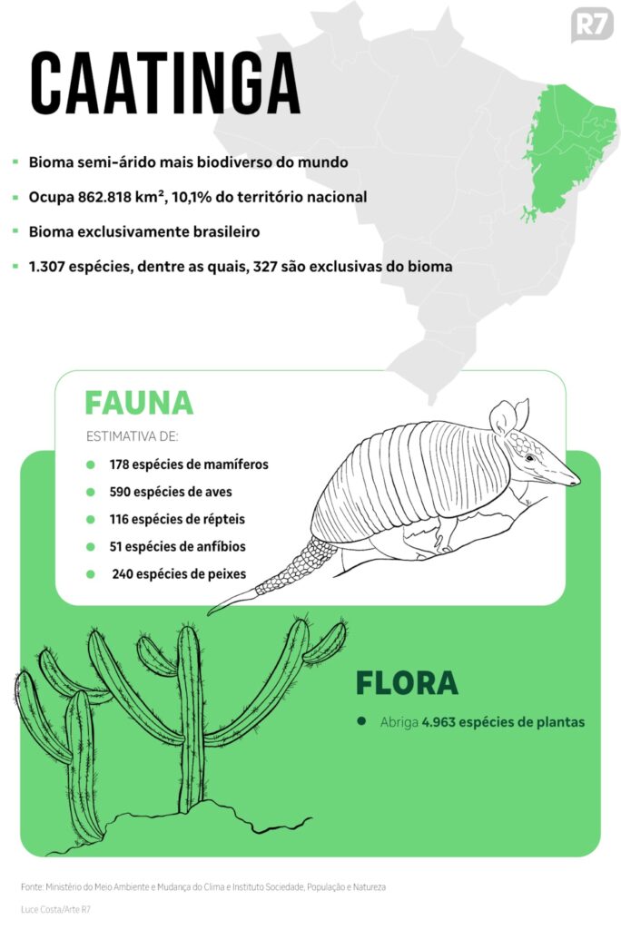 A caatinga é considerada o semiárido mais biodiverso do mundo e ocupa 10,1% do território nacional. Ao todo, 1,3 mil espécies vivem nesse habitat, sendo 327 animais exclusivos da região.