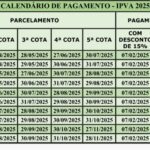 Mais uma possibilidade é pagar o imposto em cinco parcelas mensais, sem o desconto. Para isso, o proprietário de veículo deve seguir as datas descritas no calendário de pagamento do IPVA 2025. Os primeiros pagamentos parcelados começam em março. Para parcelar, é preciso que o valor devido seja no mínimo R$ 120,00.