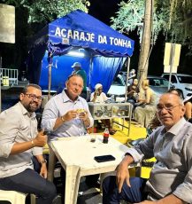 * O deputado Adolfo Menezes (PSD) mantém os mesmos hábitos de quando era presidente da Assembleia. Ao menos uma vez a cada 15 dias, se delicia com o acarajé da baiana do estacionamento da Casa. E faz questão de pagar para todo mundo.
