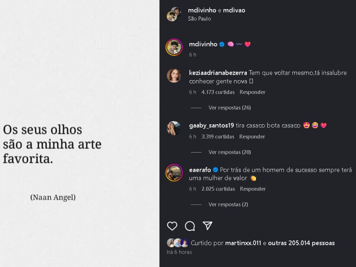 Com isso, surgiu a dúvida: eles realmente haviam terminado ou apenas reataram rapidamente? Para esclarecer a questão, Livinho confirmou que continua casado com a esposa. “Tá solteiro ainda?”, perguntou um seguidor na caixinha de perguntas do Instagram.