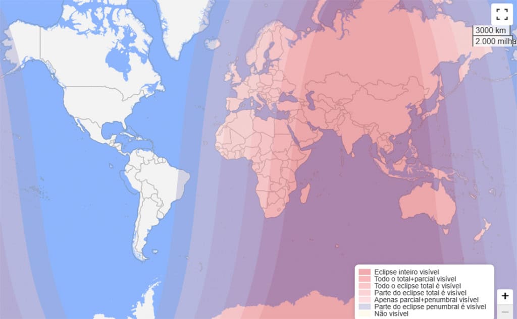 Onde o eclipse será visível?