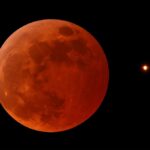 Durante o eclipse lunar, uma “estrela” amarelada brilhante poderá ser vista próxima da “Lua de Sangue”. Na verdade, não se trata de uma estrela, e sim de Saturno.