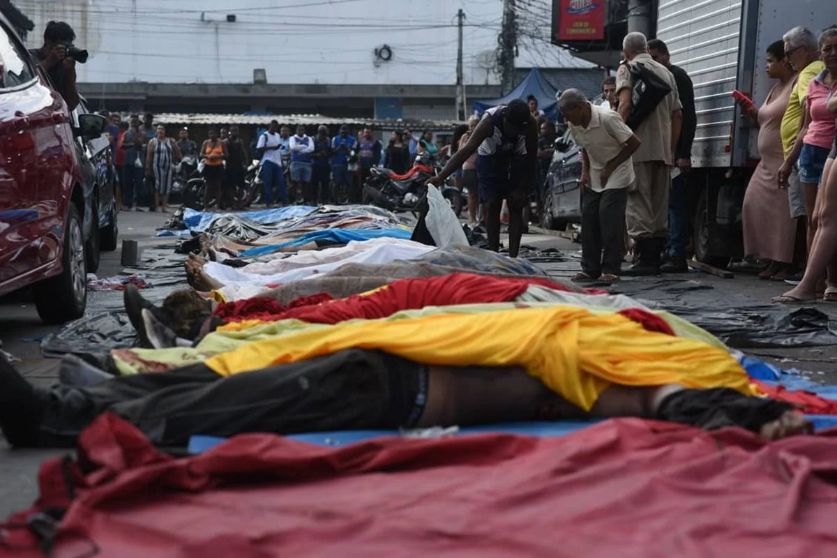Mais de 60 cadáveres foram enfileirados na Praça São Lucas, na Penha.