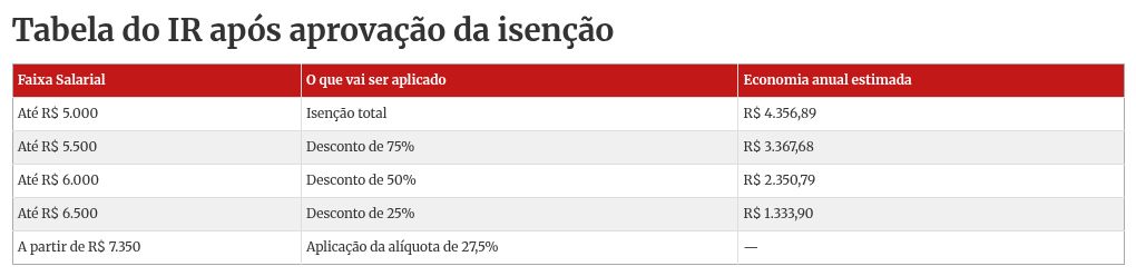 O Senado aprovou por unanimidade, nesta quarta-feira (5/11), o Projeto de Lei nº 1.087/2025, que isenta do Imposto de Renda quem ganha até R$ 5 mil por mês. Com a votação, o projeto vai a sanção do presidente Luiz Inácio Lula da Silva (PT) e poderá valer já em 2026.