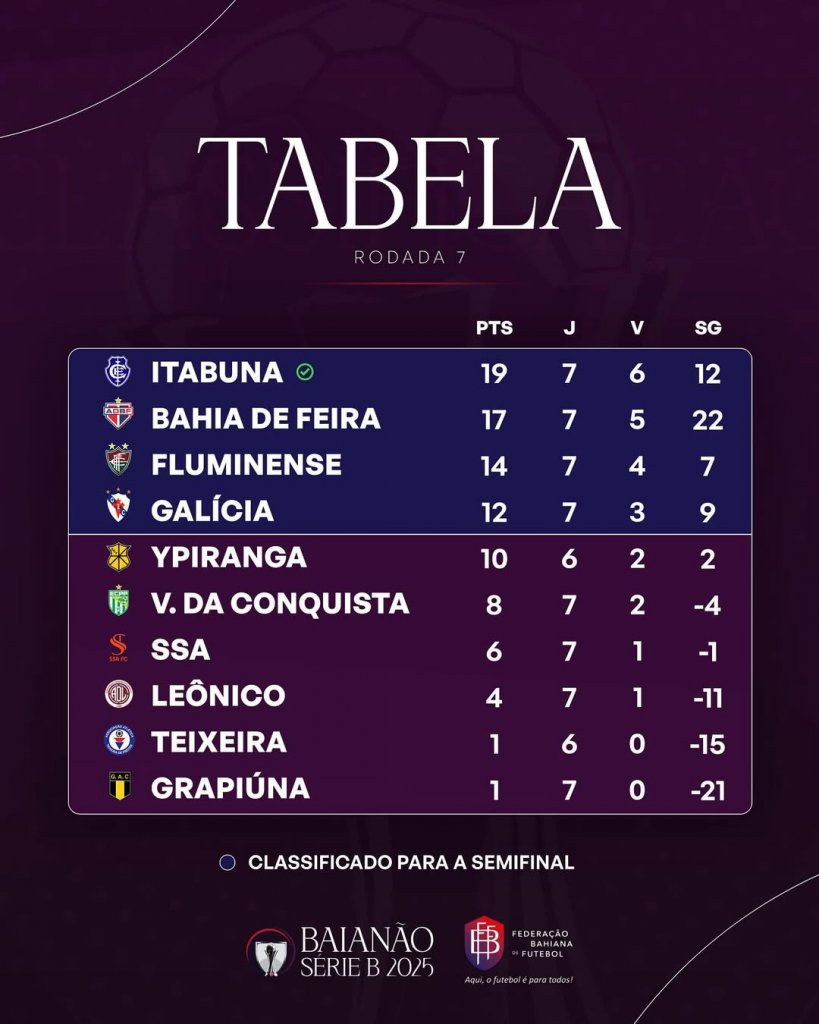 Por outro lado, o Vitória da Conquista, que perdeu para o Bahia de Feira, estacionou nos 8 pontos e caiu para a sexta posição, vendo suas chances de classificação diminuírem.