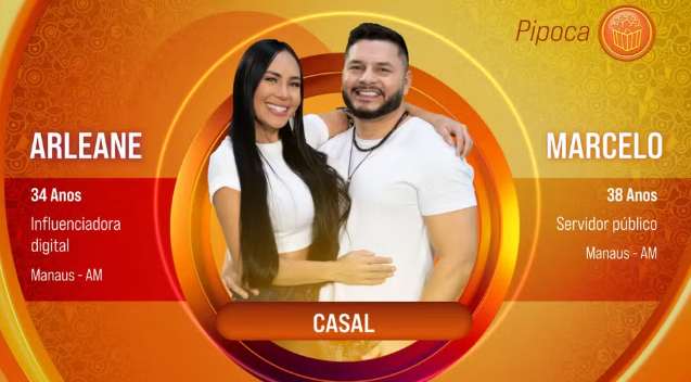 Arleane e Marcelo (casal): formada em Estética e Cosmética, Arleane, de 34 anos, atua como influenciadora em Manaus, no Amazonas, onde mora com o marido Marcelo, de 38 anos, servidor público que atua como engenheiro da segurança do trabalho. Os dois estão juntos há 11 anos.