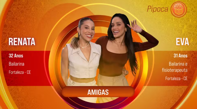 Eva e Renata (amigas): as amigas de 31 e 32, são naturais de Fortaleza, no Ceará, e estão solteiras. As duas se conheceram há 25 anos em um projeto social onde iniciaram sua trajetória na dança e a amizade. Além de bailarina, Eva é fisioterapeuta e Renata é professora de dança e coordenadora de uma escola de ginástica.