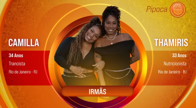 Camilla e Thamires (irmãs): as cariocas de 33 e 34, são irmãs e foram criadas pela avó e pela mãe, que nunca permitiu que as duas ficassem sem se falar. Camilla é mãe solo de dois meninos e atua como trancista no Rio. Ela foi a responsável pelo cabelo de Camilla de Lucas quando a influenciadora entrou no BBB. Já Thamires atua como nutricionista e é conhecida nas redes sociais.
