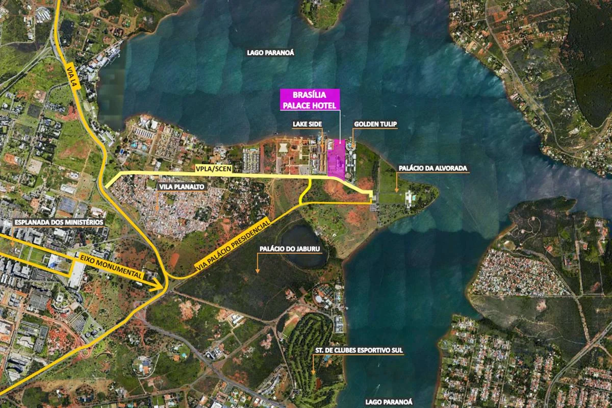“A valorização do acesso frontal é contemplada conforme diretriz do PPCub, que mantém a relação de imponência entre o Brasília Palace e seu entorno público que abriga o Palácio do Alvorada. A vista do Lago Paranoá de quem o observa a partir do Pilotis do Brasília Palace também foi um ponto de cuidado na intervenção”, afirmou.