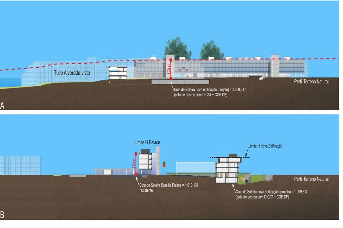 A proposta que prevê a construção de mais um prédio de tamanho idêntico ao já existente no terreno às margens do Lago Paranoá, próximo ao Palácio da Alvorada, recebeu aprovação inicial do Instituto de Proteção Instituto do Patrimônio Histórico e Artístico Nacional (Iphan), da Secretaria de Cultura do Distrito Federal e da Secretaria de Desenvolvimento Urbano e Habitação do DF (Seduh). Agora, será submetida ao Conselho de Defesa do Patrimônio Cultural do Distrito Federal (Condepac-DF).