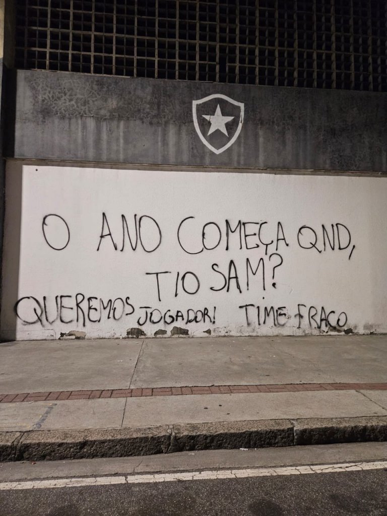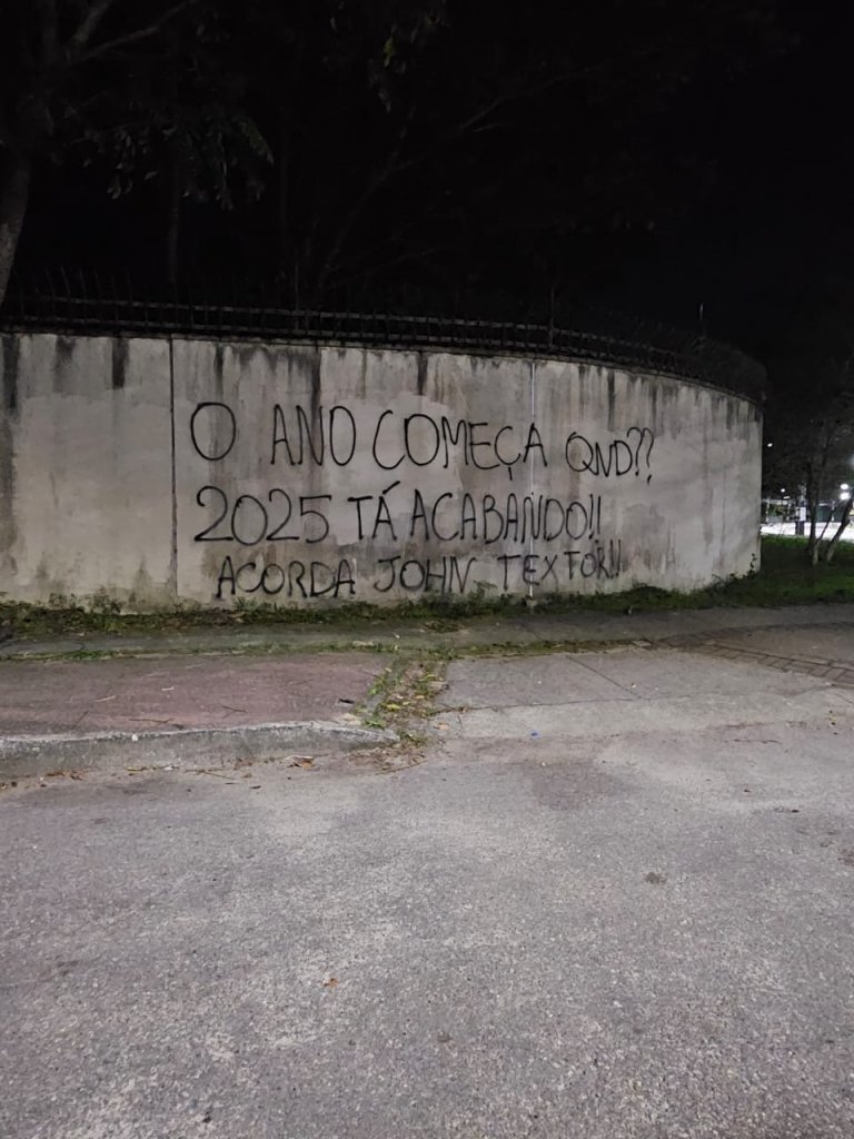 A crise no Botafogo ganhou mais um capítulo após a derrota para o Bahia, no último sábado (3), pela sétima rodada do Brasileirão. Nesta terça-feira (6), os muros do Estádio Nilton Santos foram pichados com críticas ao técnico Renato Paiva e ao proprietário John Textor, em véspera do confronto decisivo contra o Carabobo, pela Libertadores. Veja as imagens: