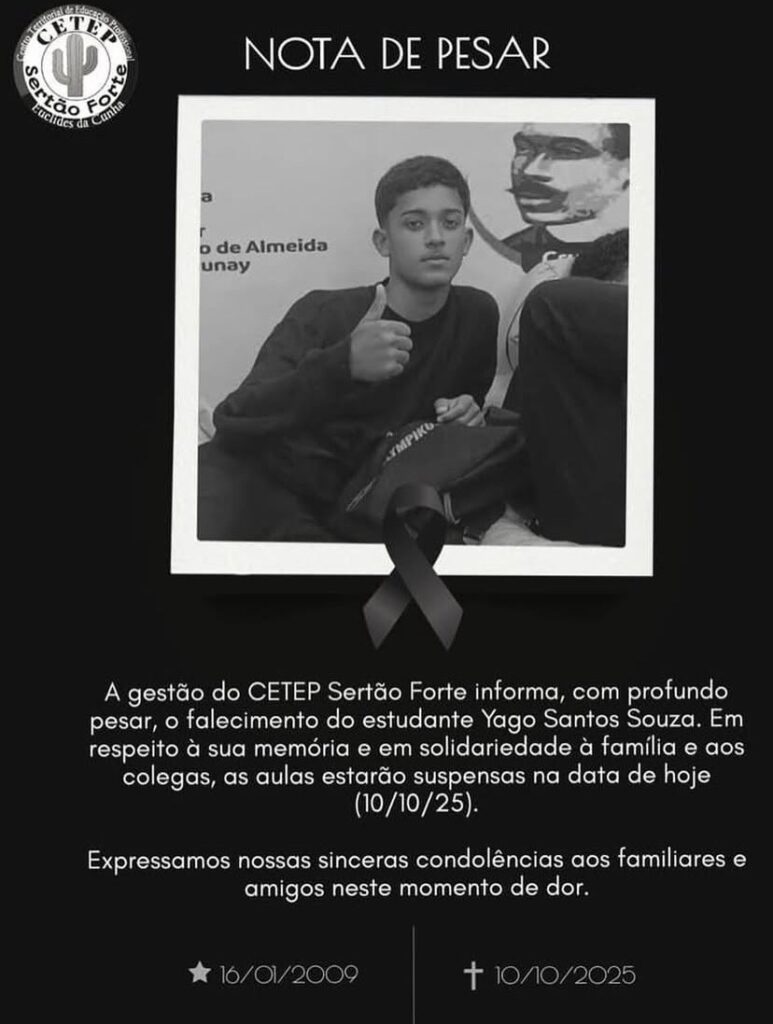 O CETEP divulgou nota de luto e solidariedade além da suspensão das aulas.