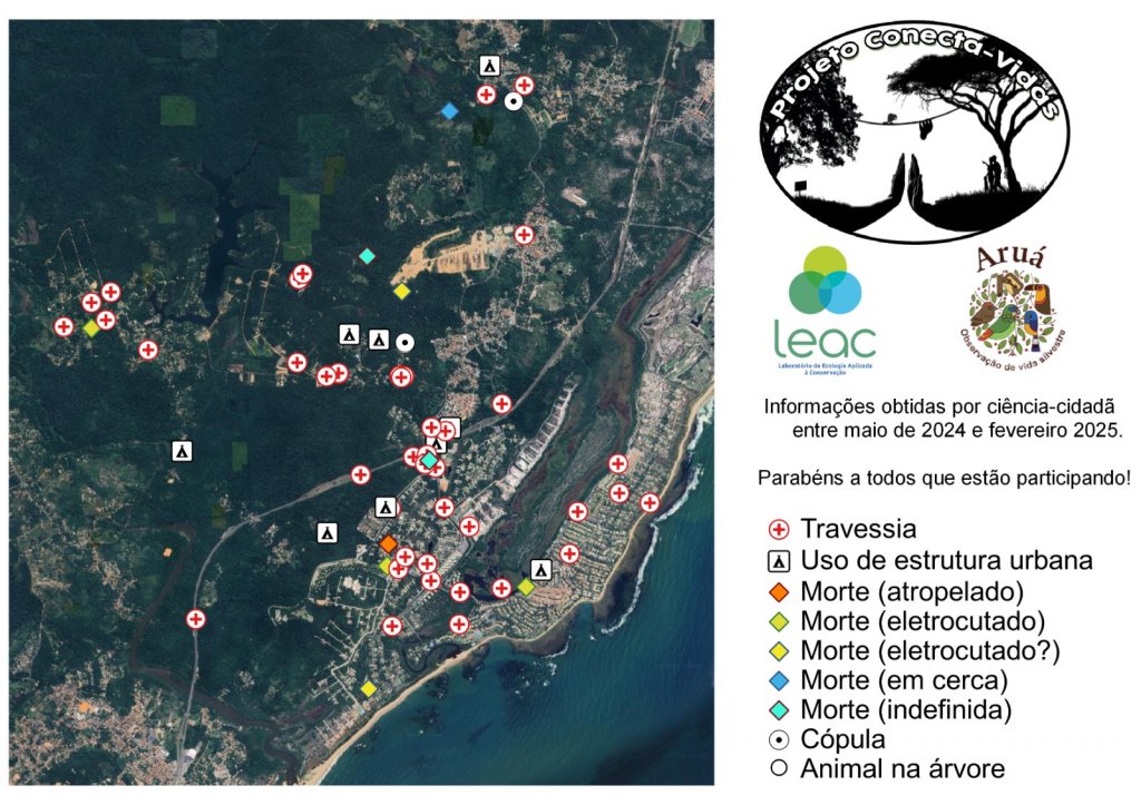 O grupo chamado Projeto Conecta-vidas opera com apoio do Laboratório de Ecologia Aplicada à Conservação da Universidade Estadual de Santa Cruz (Uesc) junto a pesquisadores Aruá Observação de Vida Silvestre. Através do compartilhamento de vídeos, fotos e localizações nas redes sociais, moradores e visitantes contribuem ativamente para a salvaguarda dessa espécie cada vez mais vulnerável.