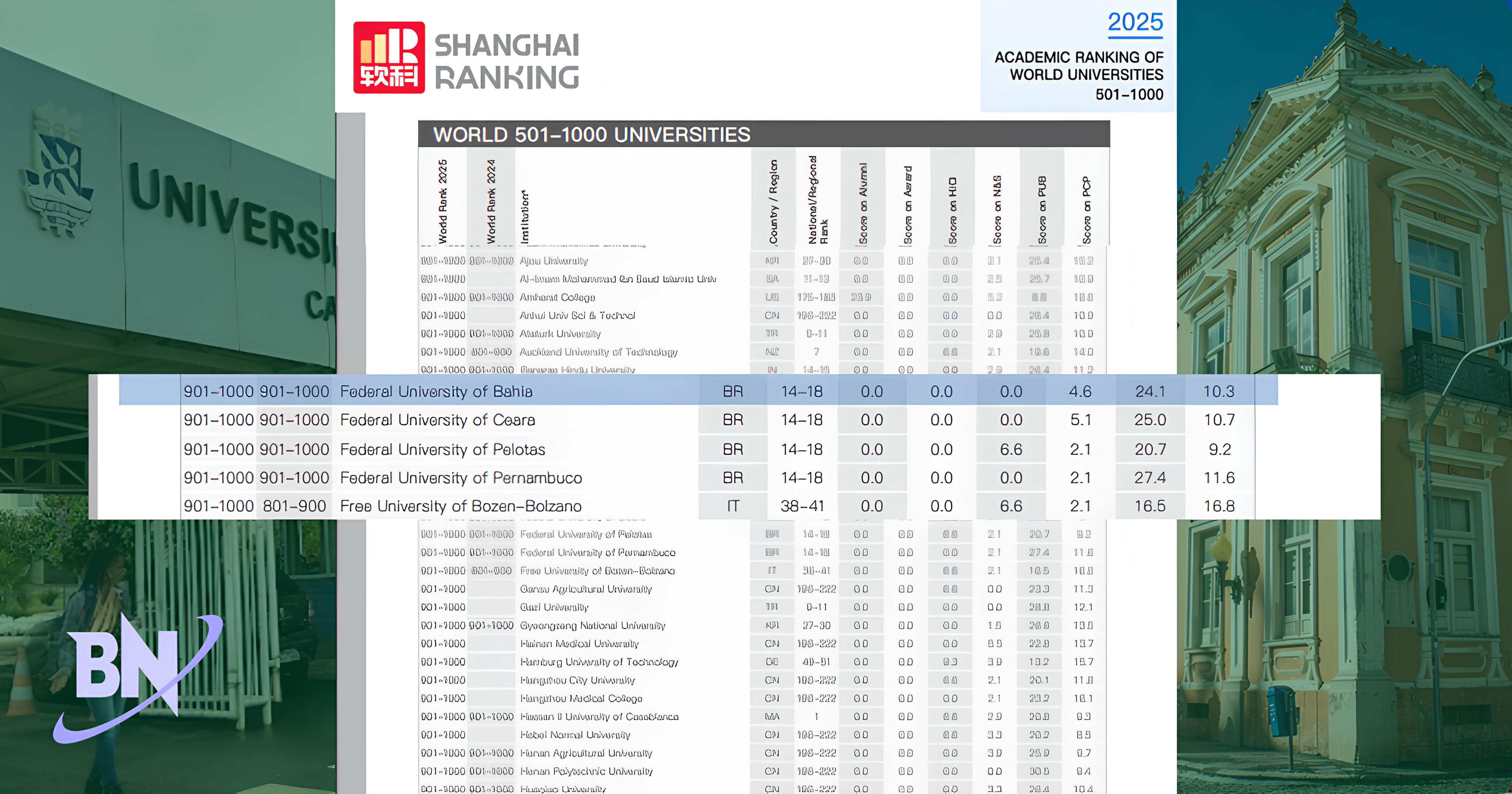 O Bahia Notícias teve acesso ao relatório completo do Ranking Acadêmico de Universidades do Mundo (ARWU) de Shanghai 2025. Nele, é possível observar que, mesmo com a UFBA melhorando, o caminho ainda é longo para ficar entre as 500 melhores do mundo.