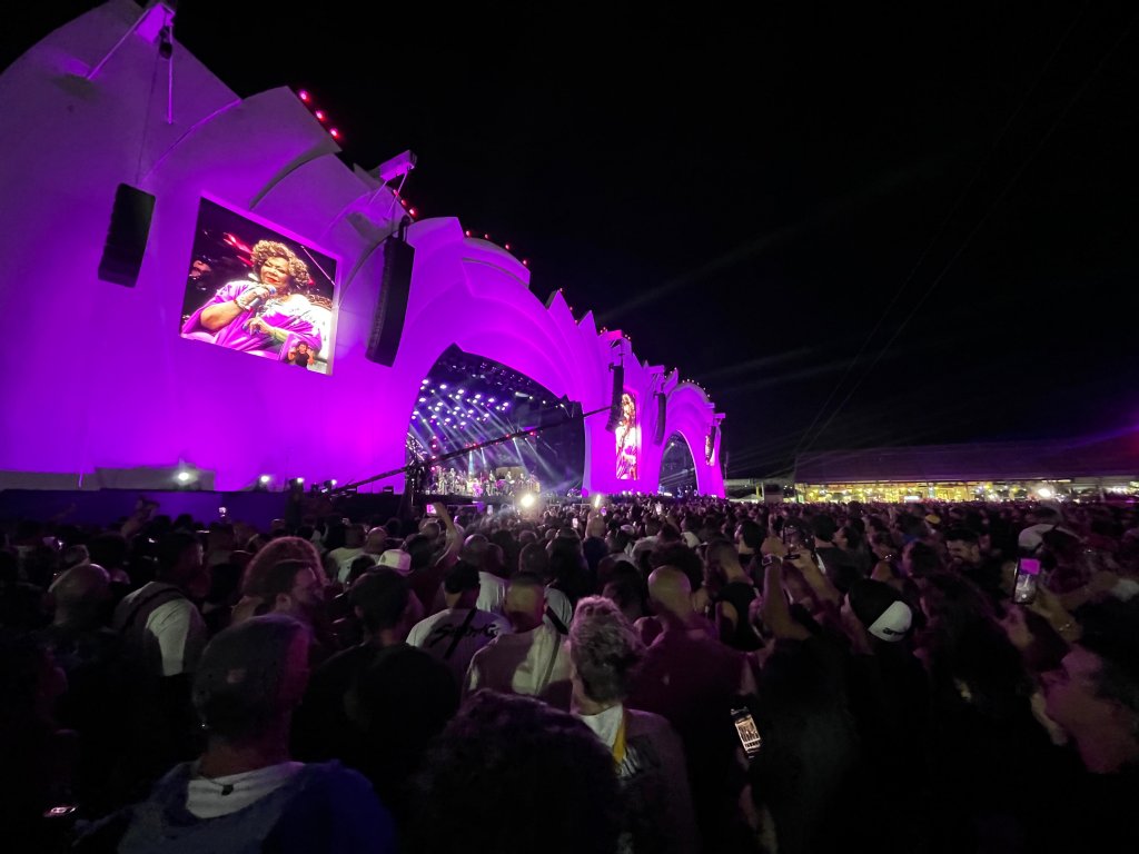 Alcione, que já foi convidada em shows de outras edições do FV, chegou cantando “Estranha Loucura” com o SPC. Dando continuidade ao show sentada, a Marrom emocionou o público com hits atemporais como “Você Me Vira A Cabeça” e “Meu Ébano”.