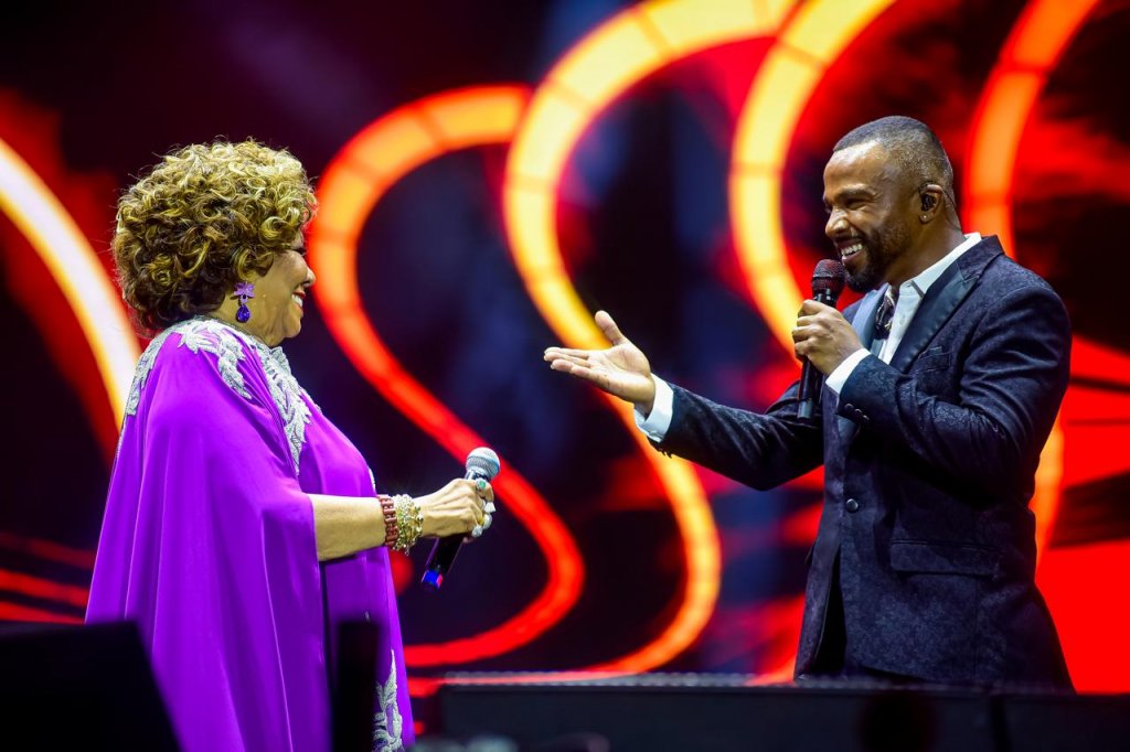 Alcione, que já foi convidada em shows de outras edições do FV, chegou cantando “Estranha Loucura” com o SPC. Dando continuidade ao show sentada, a Marrom emocionou o público com hits atemporais como “Você Me Vira A Cabeça” e “Meu Ébano”.