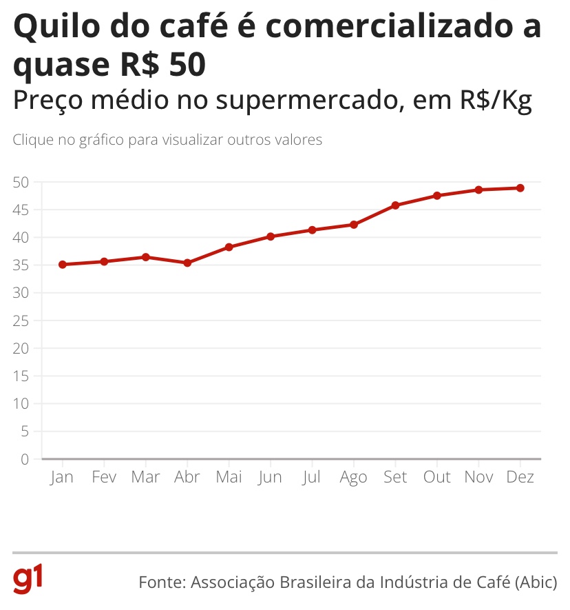 Até dezembro, um pacote do café tradicional de 1 kg podia ser comprado por R$ 48,90.