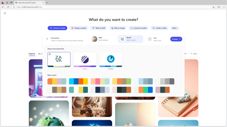 - Copilot Create, uma ferramenta que evolui do antigo Microsoft Designer, agora com o modelo GPT-4o da OpenAI, permitindo gerar imagens, vídeos, apresentações e outros conteúdos para documentos do Office.