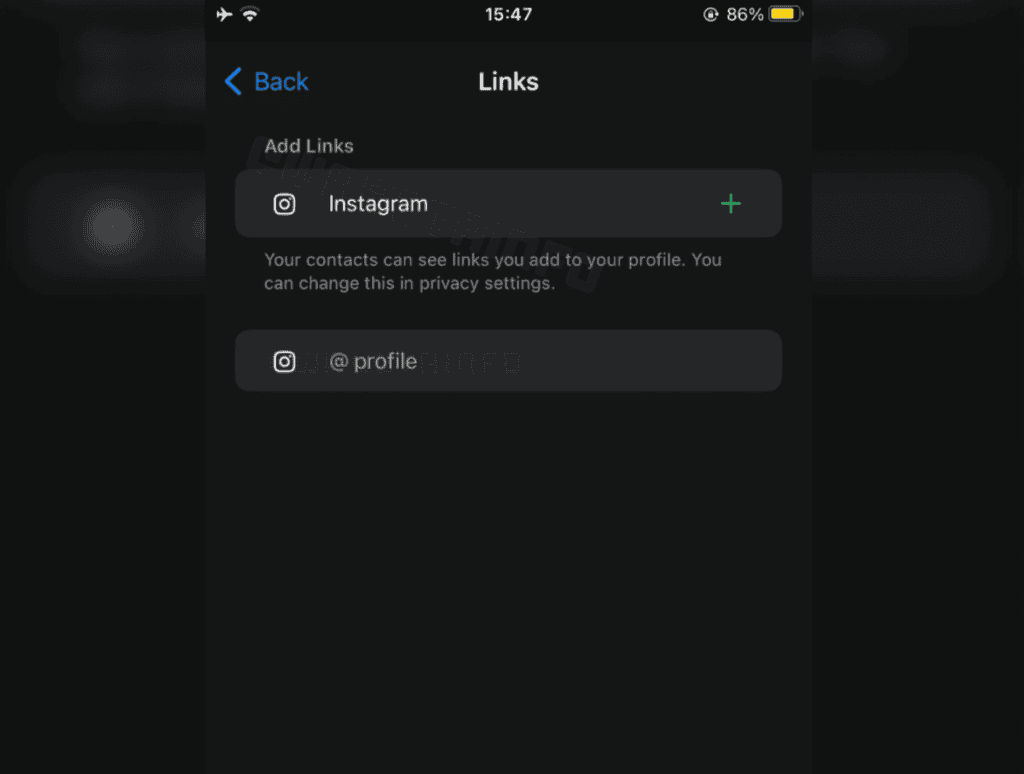 - Pensando nisso, a Meta colocou um aviso bem grande sobre o recurso que diz o seguinte: “Seus contatos podem ver os links adicionados a seu perfil. Você pode mudar isto nas configurações de privacidade.”