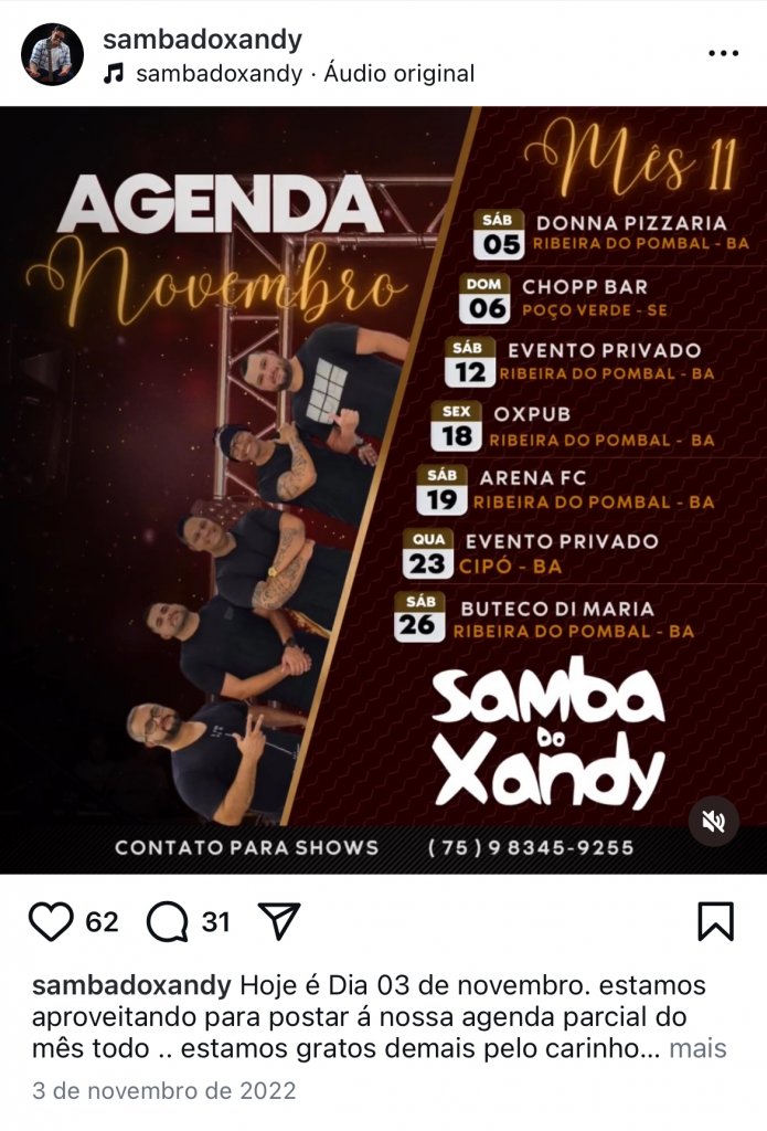 “Diante da indevida utilização da expressão “Samba do Xandy” por Alexsander Lemos de Godoy, o qual tem se apresentado publicamente com nome artístico que remete diretamente à marca registrada, informamos que não há qualquer vínculo ou autorização para tal uso, configurando clara infração aos direitos marcários da titular”, informou o grupo.